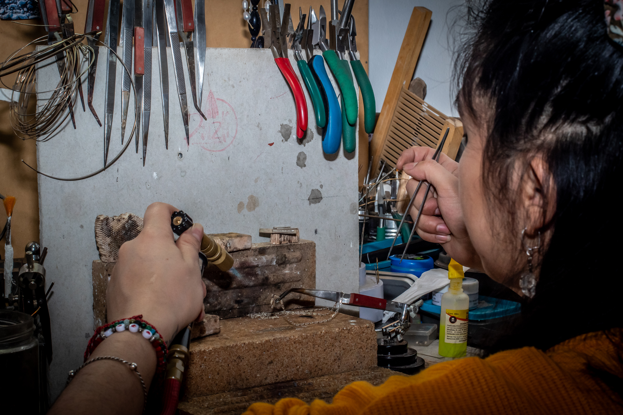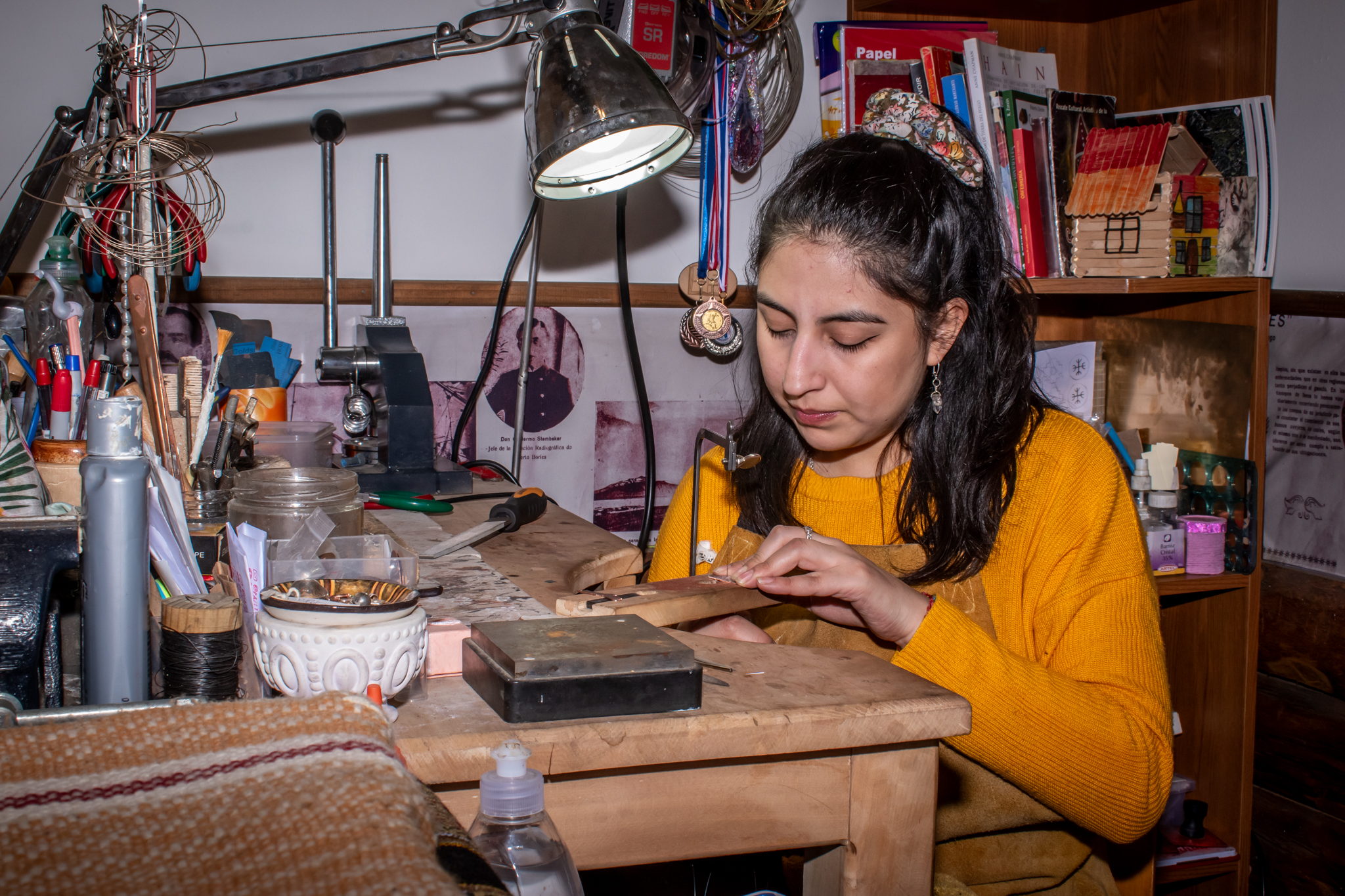 Utilizo materiales nobles como plata, cobre, bronce, cuero pintado a mano, junquillo, plumas de aves y piedras naturales para crear joyas y artesanías que destacan por su originalidad y simpleza.
