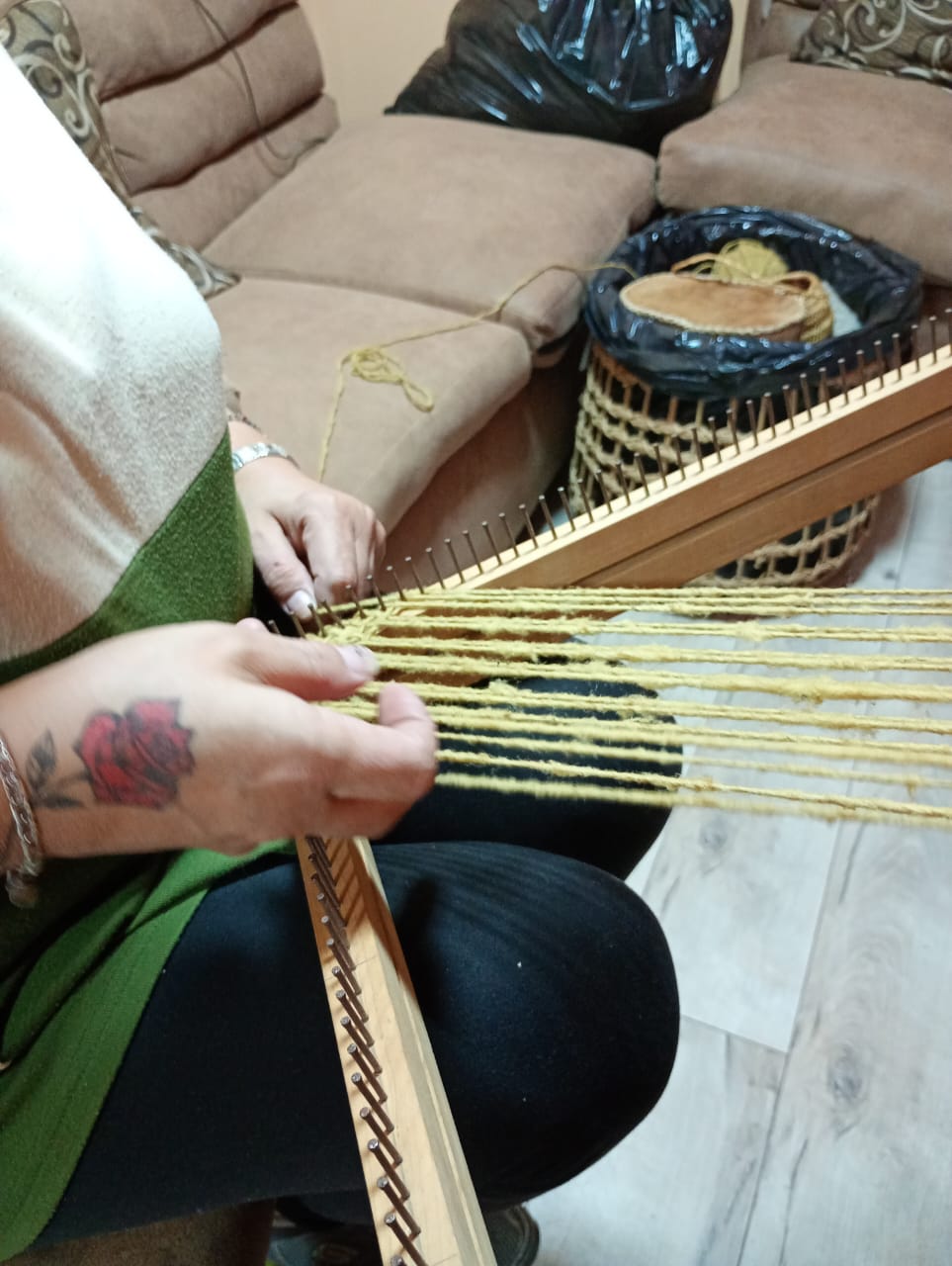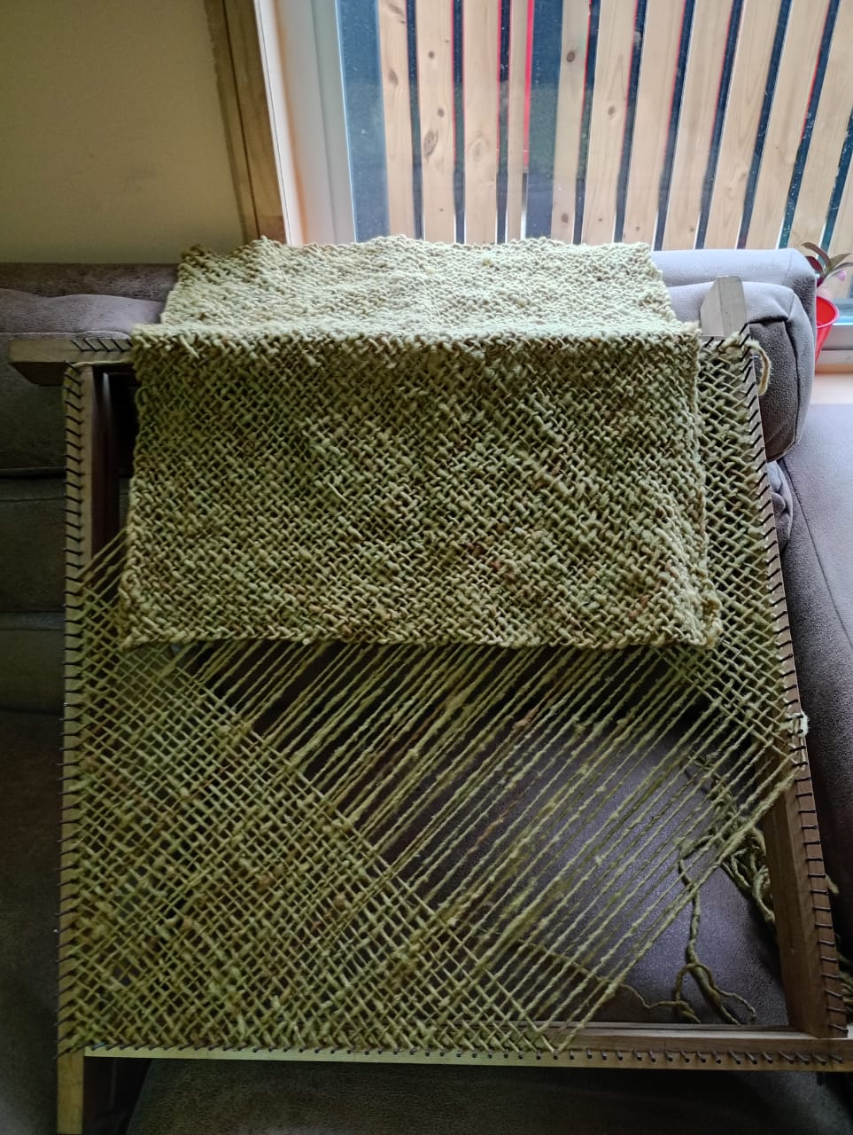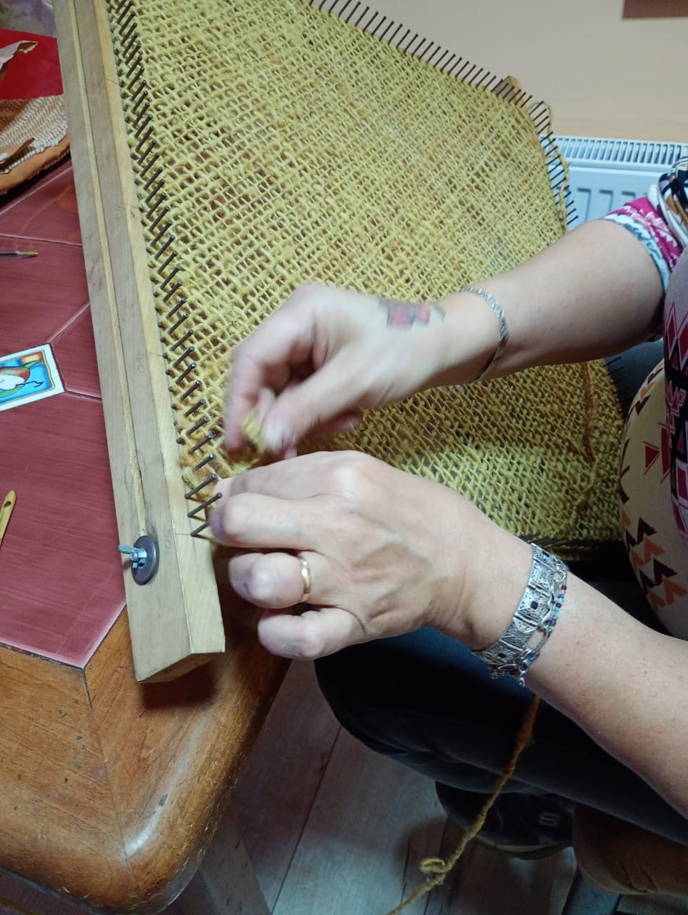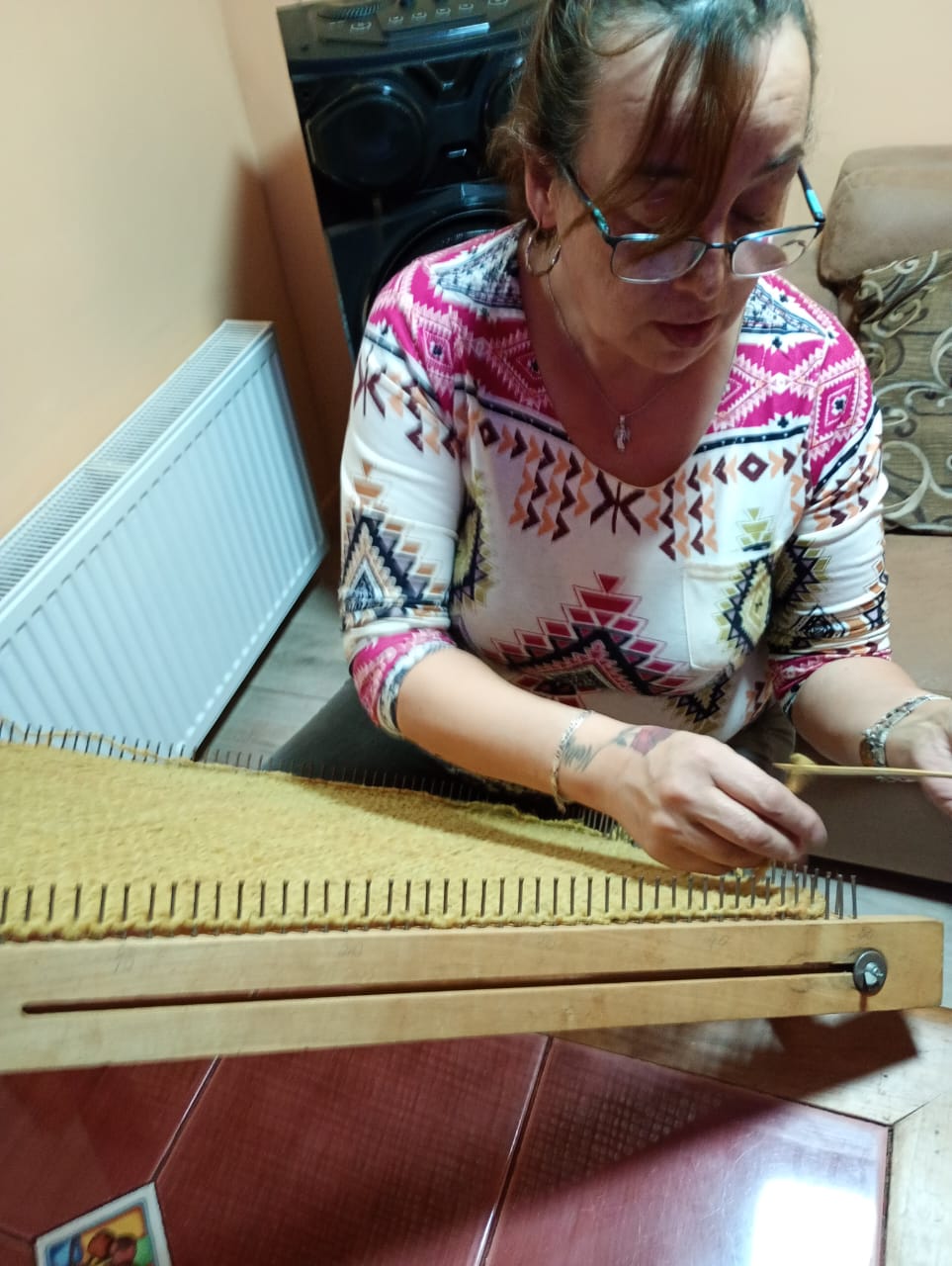 Hola, soy Mariela Cárcamo, nacida y criada en la comuna de Natales. Desde pequeña, me fascinó ver cómo se preparaba, hilaba y lavaba la lana natural de oveja, y cómo mi abuelita creaba prendas hermosas con ella. Hoy en día, he compartido mis saberes con mi hermana y amigas en reuniones de tejido, y sigo rescatando las tradiciones de mis ancestros. Me apasiona innovar y combinar técnicas antiguas con nuevas, como el telar de clavos. ¡Los invito a visitar nuestro emprendimiento @coocreapatagonia! Gracias por acompañarnos en este viaje de rescate y creación.»